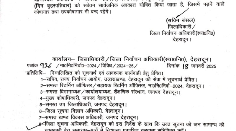 उत्तराखंड जिला अधिकारी ने आदेश किया जारी,सार्वजनिक अवकाश किया घोषित January 21, 2025 admindevprayag जिला अधिकारी ने आदेश किया जारी,सार्वजनिक अवकाश किया घोषित – Apnu Uttarakhand Skip to content error: Content is protected !! Source link