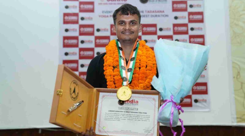 एसजीआरआर विश्वविद्यालय के योग छात्र उत्तम अग्रहरि ने ताड़ासन का बनाया राष्ट्रीय रिकार्ड,3 घण्टे 3 मिनट ताड़ासन की एक ही मुद्रा में लगातार खड़े रहकर हासिल की उपलब्धि