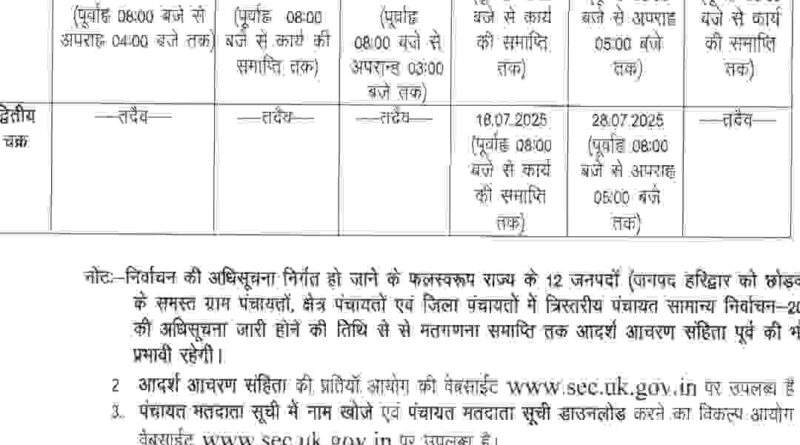 उत्तराखंड से बड़ी खबर,पँचायत चुनाव को लेकर चुनाव की नई तारीखों का ऐलान