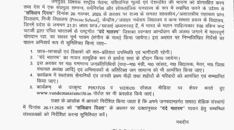 उत्तराखंड संविधान दिवस पर सभी स्कूलों में गूंजेगा वन्देमातरम,फोटो वीडियो भी करने होंगे अपलोड November 15, 2025 admindevprayag Source link