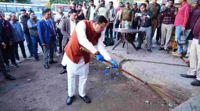 मुख्यमंत्री धामी का आईएसबीटी देहरादून में औचक निरीक्षण,गंदगी देखकर खुद उठाई झाड़ू