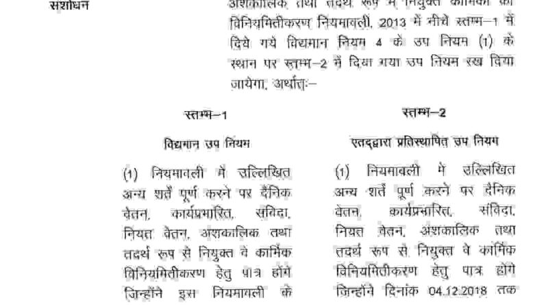 दैनिक वेतन,संविदा,नियत वेतन,अंशकालिक तथा तदर्थ रूप में नियुक्त कार्मिकों के लिए खुशखबरी,विनियमितीकरण के लिए नियवावली जारी